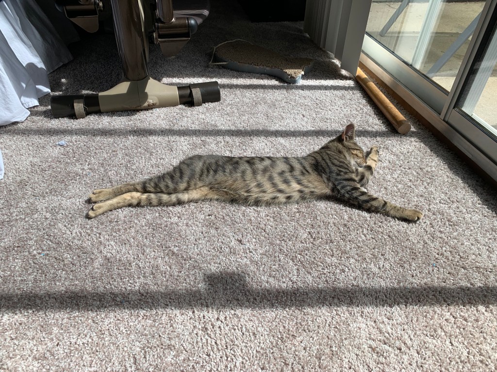 Al loved laying in the back room where the sun poured in. He loved hiding under the couch when the sun was hitting him too hard and he needed a break. He loved new people. He loved tearing up blinds. He loved being held. He loved dramatically jumping on the dinner table when he was hungry. He loved sleeping under the covers with one paw on me and one paw on Haley. He loved letting out the sweetest meow when it was time for a treat. He loved trying to find the worst place he could scratch me on my body. He loved flying down the steps in the morning when the first person woke up. He loved watching TV with us for some reason. He loved laying on laundry like it was his palace. He loved wagging his stump of a tail as if he had one as long as Vinny’s.